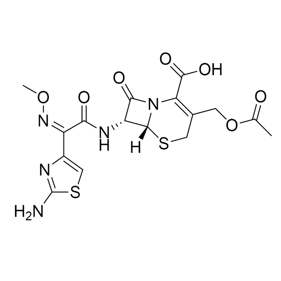 Cefotaxime is a third-generation cephalosporin antibiotic that belongs to the β-lactam class. It works by inhibiting bacterial cell wall synthesis, causing the death of susceptible bacteria. It is administered intravenously (IV) or intramuscularly (IM) and has a broad spectrum of activity against many Gram-negative bacteria, including Escherichia coli, Klebsiella, Proteus, and Haemophilus influenzae, as well as some Gram-positive bacteria. Cefotaxime is more effective against Gram-negative infections than earlier-generation cephalosporins and is resistant to some β-lactamases.